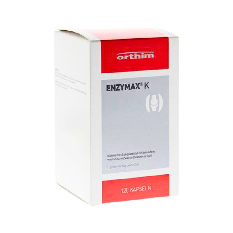 EnzyMax K – 120 capsule gastro-rezistente | Orthim EnzyMax K de la Orthim GmbH, Germania, este un supliment nutritiv enzimatic complex, creat pentru susținerea sistemului imunitar și reducerea inflamațiilor. Este considerat o alternativă naturală eficientă la Wobenzym, cu o formulă atent selecționată care combină enzime, vitamine și minerale. ️ Utilizare medicală: Adjuvant în inflamații cronice și acute Sprijină recuperarea post-operatorie sau post-traumatică Contribuie la sănătatea oaselor și articulațiilor Stimulează sistemul imunitar și reduce stresul oxidativ ️ Ingrediente (pe capsulă): Papaină (din extract de papaya) Bromelaină (din extract de ananas) Bioflavonoide citrice Nattokinază (din soia) Vitamina K1, D3, C Zinc, Mangan, Seleniu, Biotină Capsulă vegetală gastro-rezistentă (HPMC) ️ Specificații tehnice: Doză recomandată: 3 capsule/zi (cu 1 oră înainte de mese) Formă: capsule vegetale gastro-rezistente Activitate enzimatică: 1.840 FIP unități / capsulă Fără lactoză, gluten, coloranți artificiali Vegan ️ Detalii ambalaj: Conținut: 120 capsule Țara de origine: Germania Ambalat conform GMP: Da ️ Precauții: Consultați medicul dacă sunteți însărcinată, alăptați sau aveți afecțiuni cronice Nu se recomandă în timpul tratamentelor anticoagulante fără aviz medical A nu se lăsa la îndemâna copiilor Nu înlocuiește un regim alimentar variat Producător & Distribuitor: Producător: Orthim GmbH & Co. KG, Germania Distribuitor: Oncosop (România)